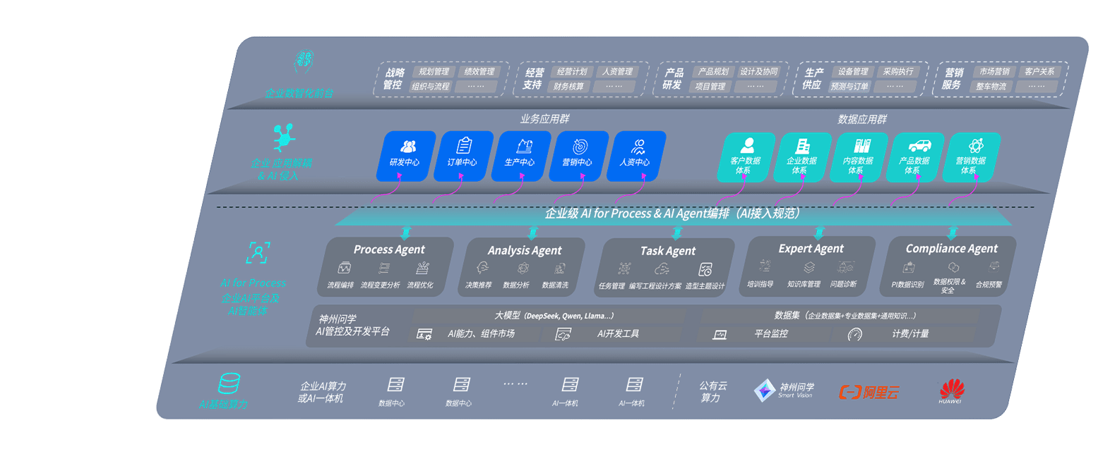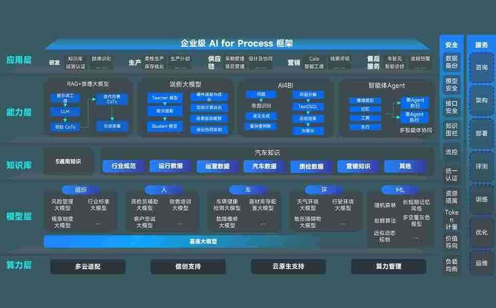 端到端的一站式AI工作空间深度融合了从企业战略规划到日常经营的全流程业务板块,,,,定向解决车企内部领域多、、、、部门多、、链条长、、场景碎片化等难题,,,,支持车企快速构建以AI为核心的生产力写作体系,,,实现任务执行与AI能力的无缝集成与交互